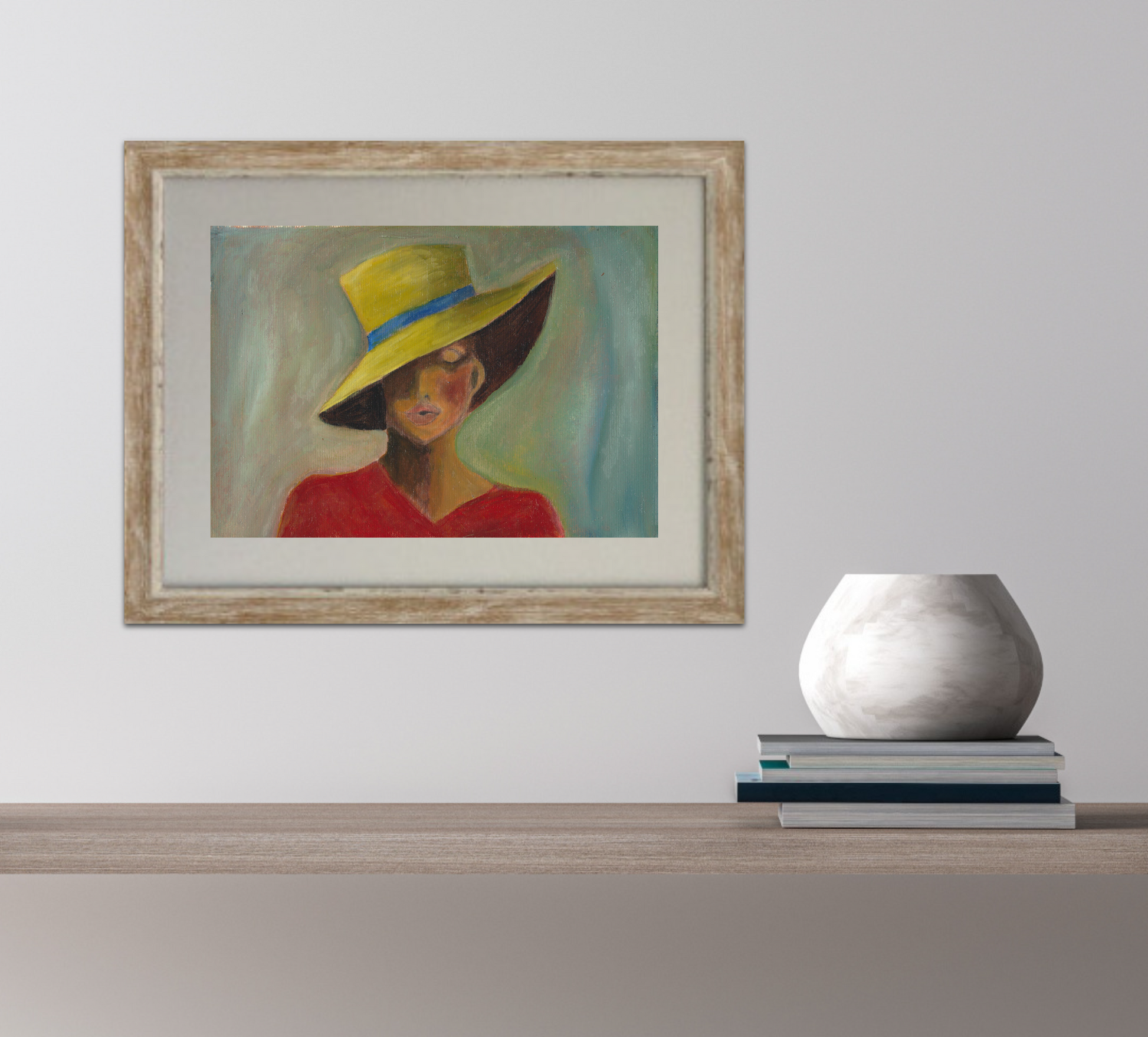 Introducing the beautiful "Yellow Hat" oil painting on a high-quality A4 canvas sheet. Enjoy this stunning addition to your art collection, perfectly sized at 11.7x8.3 inches. Please note, frame not included. Elevate any room with this unique and vibrant piece.